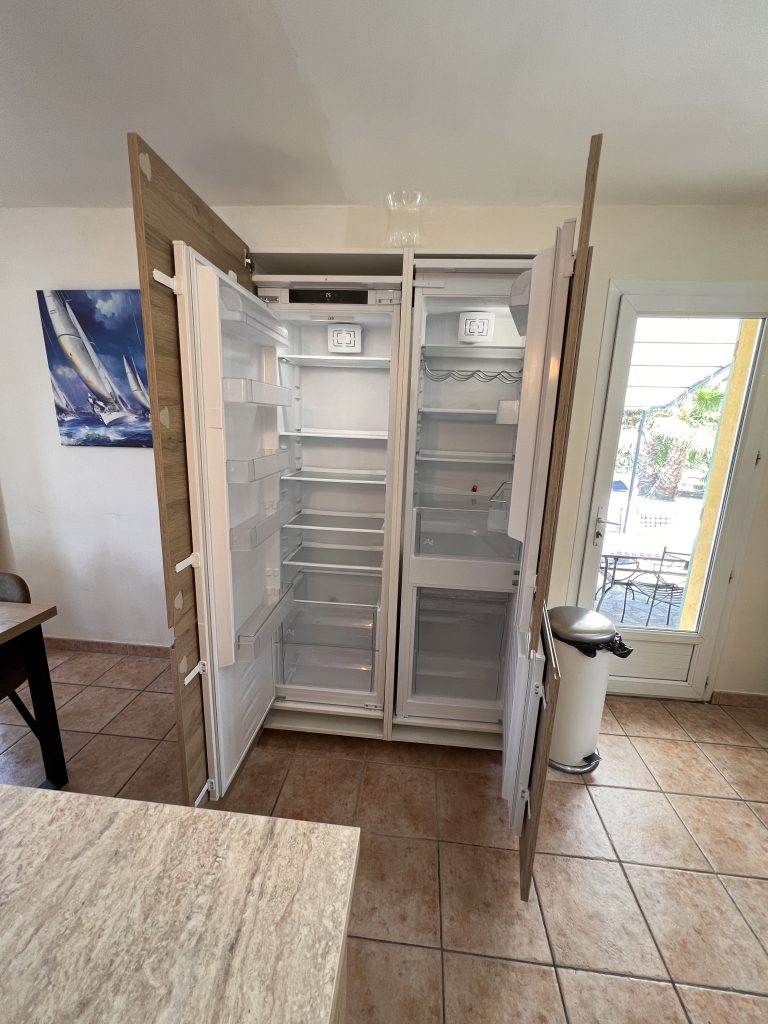 • une cuisine ouverte avec 2 très grands réfrigérateurs, un lave-vaisselle, un micro-ondes, un four traditionnel et des plaques à induction. Il y a également tout le nécessaire pour cuisiner et pour servir. La cuisine donne sur la terrasse et la piscine.