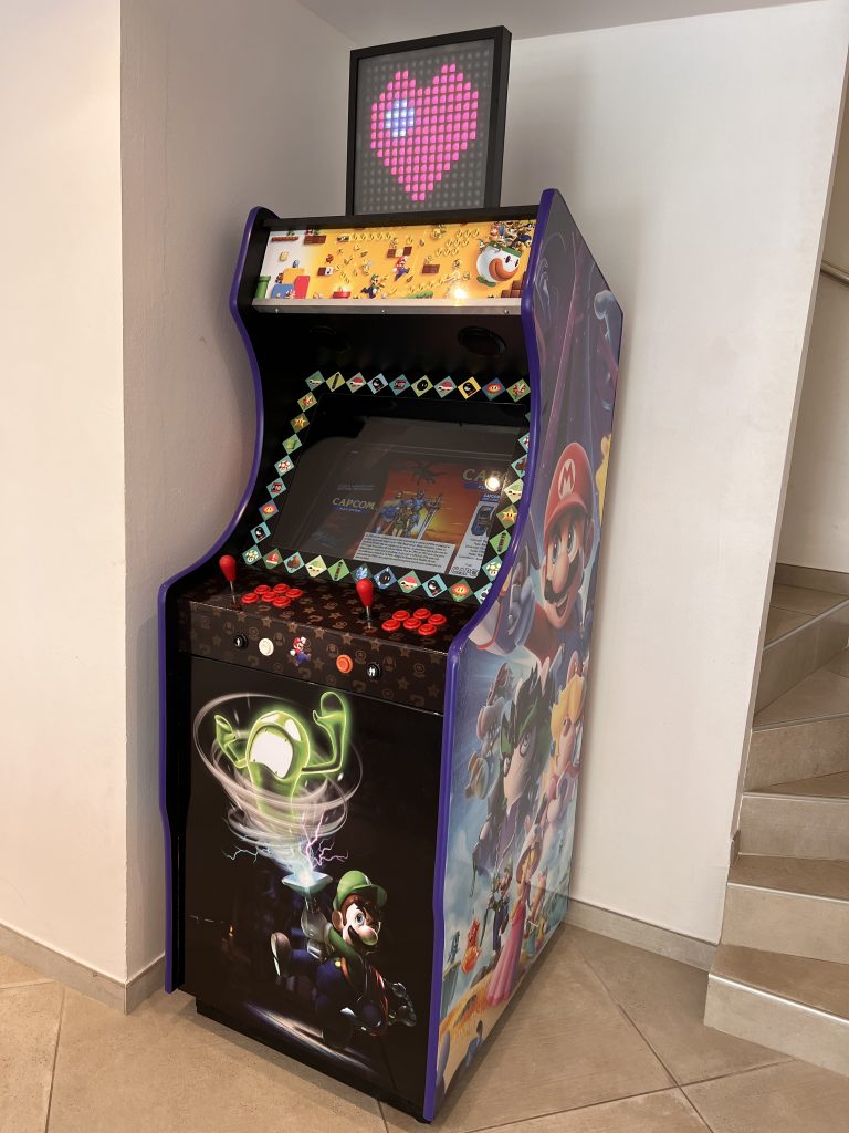 • une salle de jeux avec un baby-foot, un billard, une borne d’arcade et aussi un canapé clic-clac.